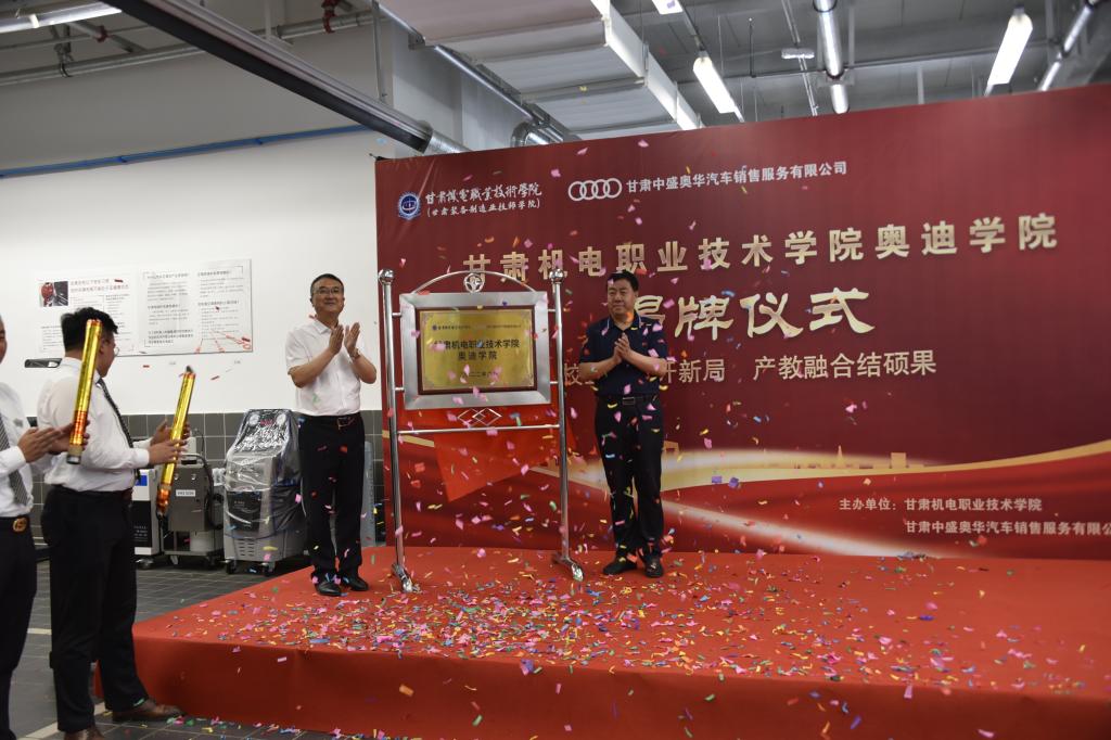 当天,甘肃机电职业技术学院奥迪学院和甘肃机电职业技术学院66文创产业学院同时揭牌。