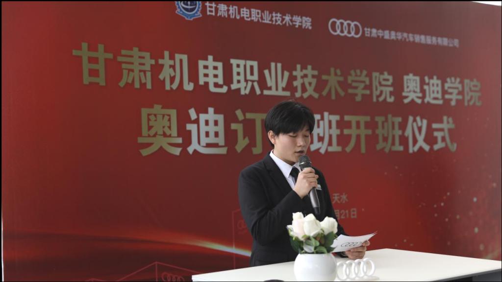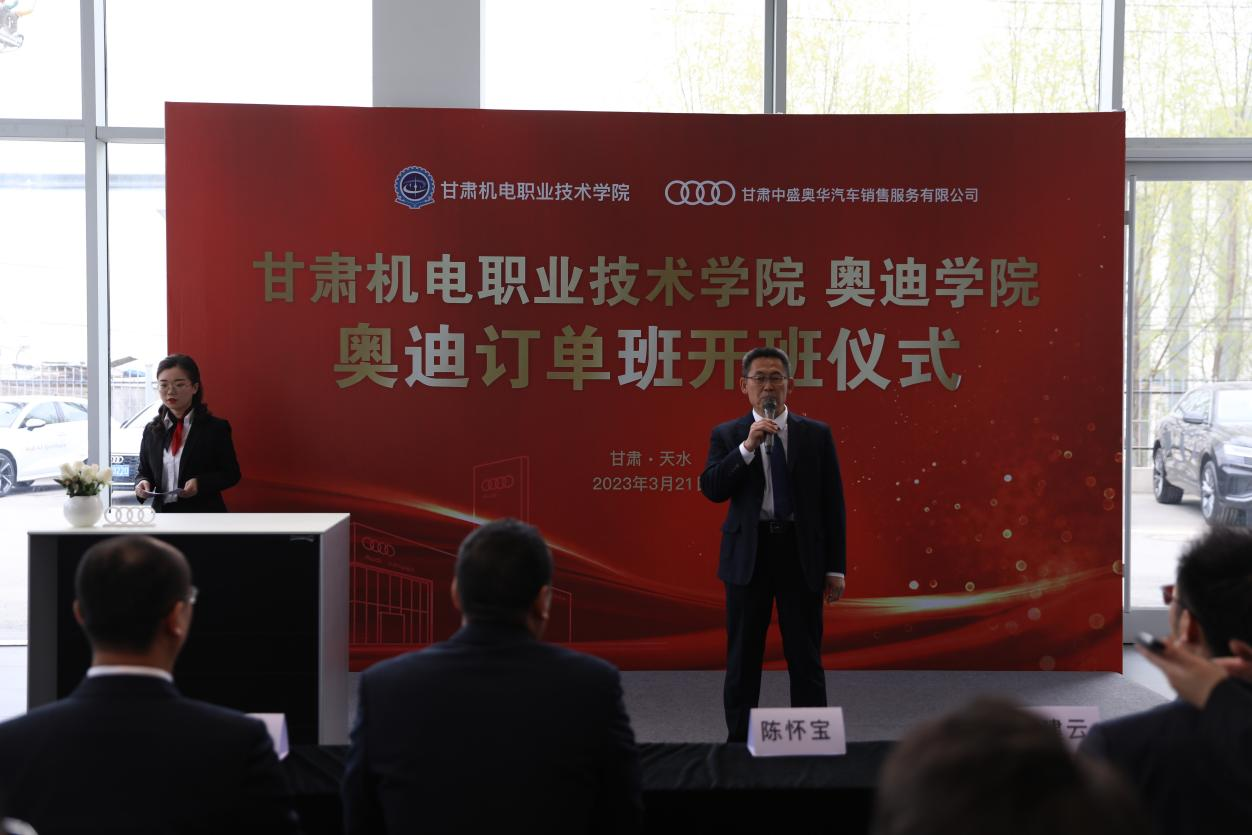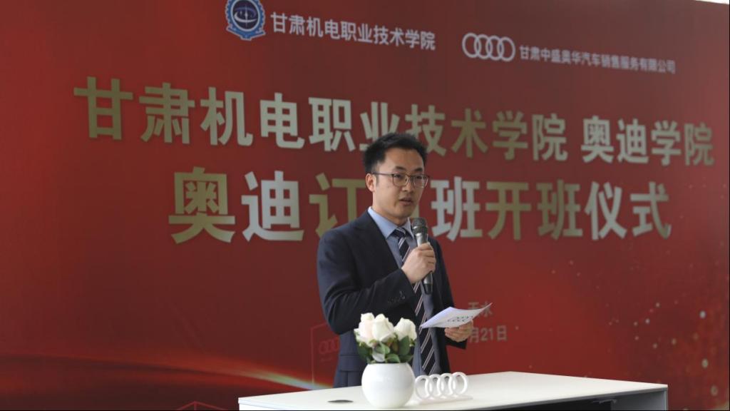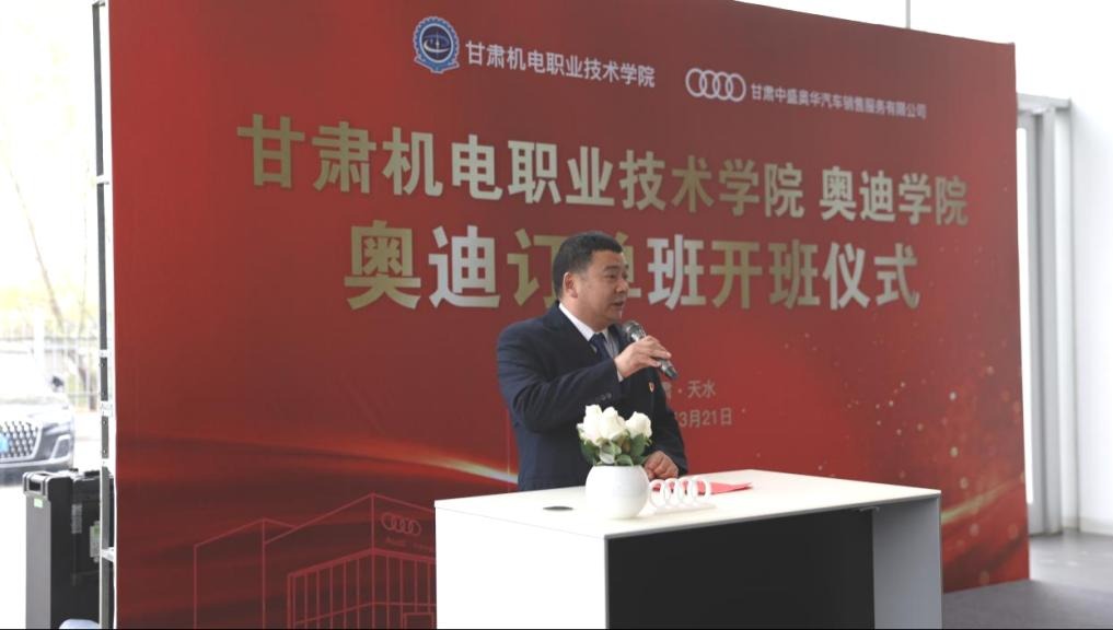 仪式上,甘肃中盛奥华汽车销售服务有限公司总经理葛建云从企业发展前景、用人标准、订单班培育成果产出等方面做出详细阐述,并鼓励订单班学生不负韶华,努力学习,知技并行,为最终步入职场打好坚实基础。